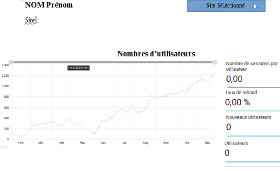 Durant ce stage, j'ai conçu un site web permettant aux clients de voir les statistiques du site que l'entreprise leur avait développé. J'ai utilisé l'API de Google Analytics pour en extraire les données réellement intéressantes.